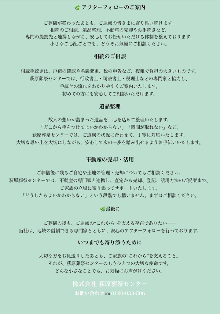 アフターフォロー